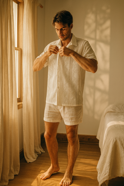 Introducing the ZYLEN LONDON BreezeWeave Shirt — where vintage charm meets modern edge. Crafted with a breathable mesh texture and a bold see-through design, this retro-inspired button-down is made for the confident, carefree, and effortlessly stylish. Whether you're hitting a beach party, rooftop bar, or just soaking up the sun, this shirt is your ultimate summer flex. The intricate fishnet knit brings comfort, coolness, and a dose of sexy streetwear energy to every look. ✔ Available in UK Sizes S to 3XL ✔ Soft stretch knit fabric ✔ Retro pattern meets coastal minimalism ✔ Designed for bold summer living Own the heat. Own the vibe. Only from ZYLEN LONDON