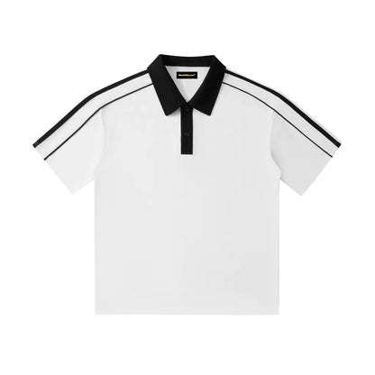 Clothing Features: Contrast Collar, Breathable Fabric, Short Sleeves, Button Placket